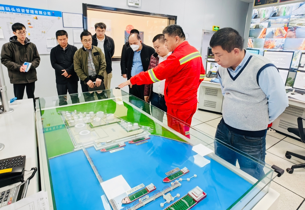 2月16日下午,廣西北海市鐵山港(臨海)工業(yè)區(qū)管委會副主任盧道云一行到海騰碼頭參觀調(diào)研。區(qū)應(yīng)急局、經(jīng)發(fā)局和商務(wù)局相關(guān)負(fù)責(zé)人員,海騰碼頭總經(jīng)理陳亮等人陪同。