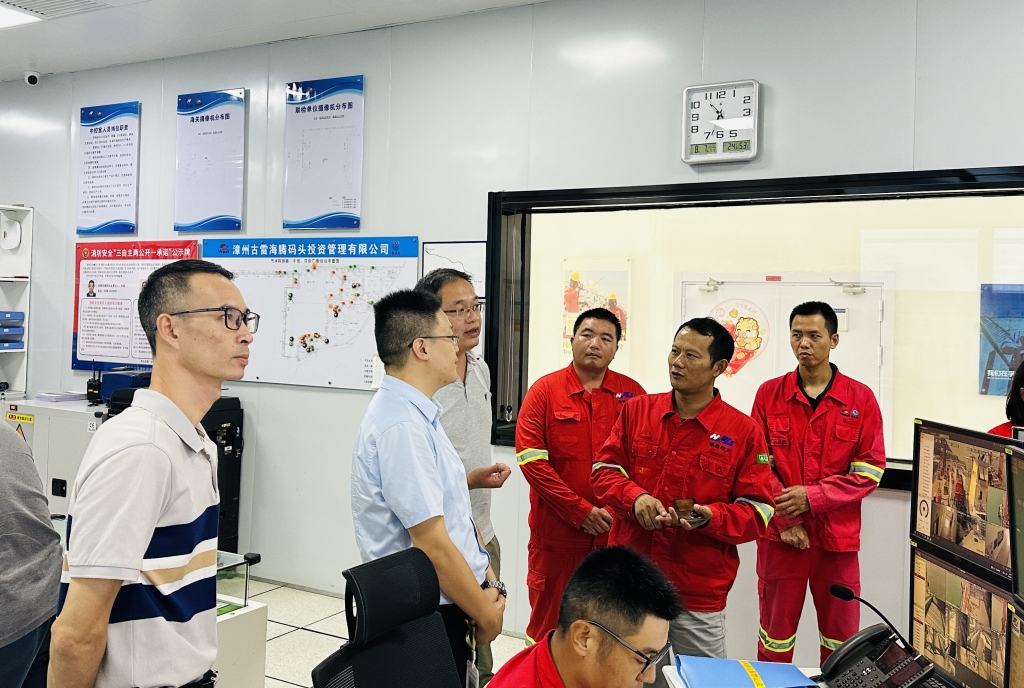 為督促安全生產(chǎn)責(zé)任落實,提升港口安全管理水平,8月7日上午,省港航中心紀委書記蔣斐虎一行到海騰碼頭開展安全生產(chǎn)責(zé)任制監(jiān)督調(diào)研暨涉企服務(wù)回訪工作。海騰碼頭總經(jīng)理張斌、副總經(jīng)理藍武才、庫區(qū)經(jīng)理林國鋒等人陪同。