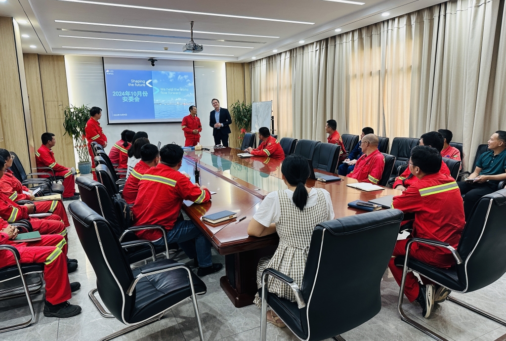 Ramon Jose Martinez一行聽取了企業(yè)關(guān)于公司概況、安全管理、操作運(yùn)營、項(xiàng)目維修、未來發(fā)展規(guī)劃等方面的匯報(bào),實(shí)地參觀了海騰中控室和消防泵房,詳細(xì)了解了儲罐區(qū)域和碼頭區(qū)域項(xiàng)目情況,特別是海騰碼頭配套中沙古雷乙烯項(xiàng)目進(jìn)展,并對相關(guān)文件資料進(jìn)行了審閱。