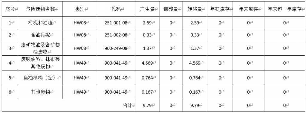 2023年海騰碼頭危險(xiǎn)廢物產(chǎn)生處置情況