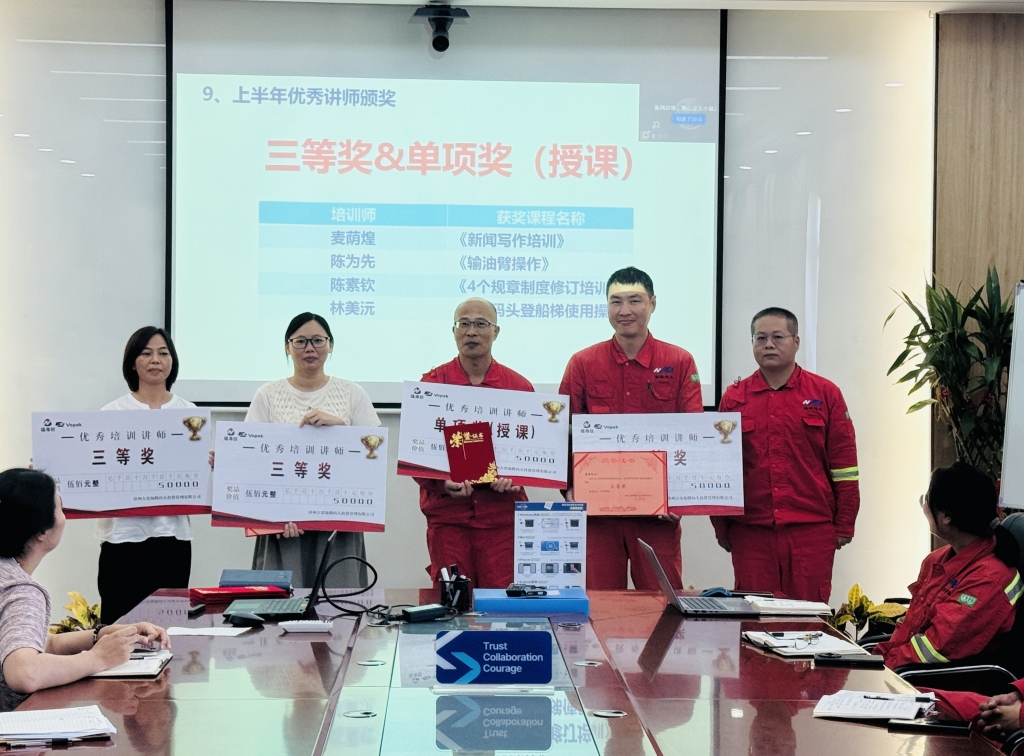 為進一步激發(fā)培訓講師隊伍活力,樹立教學標桿典范,推動公司培訓工作提質(zhì)增效,9月10日上午,海騰碼頭在中控樓二樓會議室舉行2025年上半年優(yōu)秀講師頒獎儀式。公司領導班子、各部門負責人及部分員工代表齊聚現(xiàn)場,共同見證榮譽時刻。